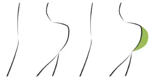 However, when the lower buttock is more severely flat fat transfer alone may not be enough. The prominent upper buttock forces a very large mid and lower buttock in order to be round. The skin and support tissue cannot expand enough to obtain a round shape. Also, adding a large amount of fat in the mid and lower buttocks can lift the upper buttocks and make the problem worse.