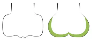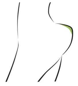 A square shaped buttock is generally less attractive than a round or inverted heart shape. In addition, the square buttocks often have a prominent lower inner buttock or “doggy ears”.